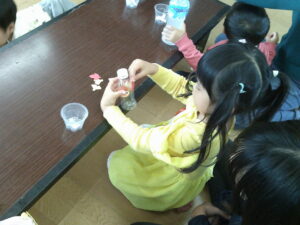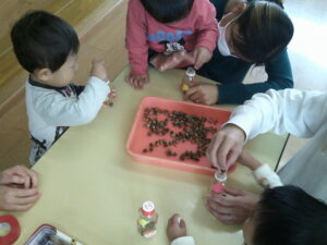 わかっこ教室で、季節のおもちゃ製作として「どんぐりマラカス」を作りましたよ。
