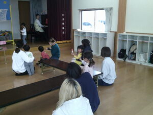最後は「どんぐりころころ」のピアノに合わせて、みんなで音楽会をしましたよ。