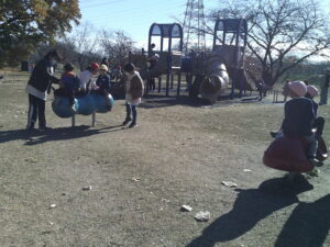大きな遊具ですべり台をたくさん楽しんだり、うんていに挑戦するお友だちもいましたよ。