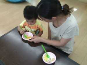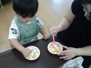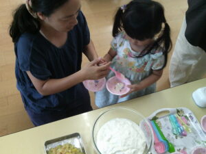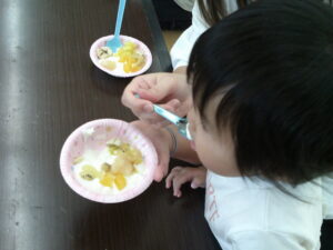 食育イベント「フルーツヨーグルト作り」を未就園児さんと行いました!