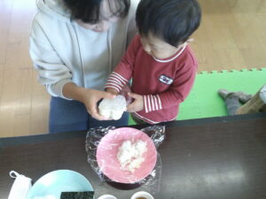 大きなおにぎり、小さなおにぎり、ころころおにぎり、いろいろな形になりましたね。